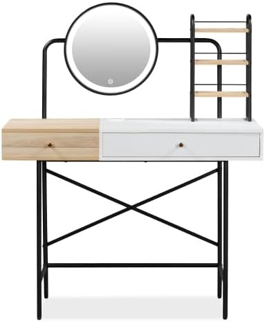 "Elevate your morning routine with the Guo Baitur 40"" Makeup Vanity Desk, a sophisticated and practical addition to any bedroom. This vanity desk combines form and function with its 3-mode lighted mirror, wireless charging station, and ample storage space. The illuminated mirror features bright, yet gentle, touch-switch LED lights in three color modes—warm yellow, warm white, and cool white—allowing you to achieve the perfect makeup look under any lighting condition. The built-in wireless charging station and USB port ensure your devices stay charged and ready, enhancing your grooming experience. With three open shelves and a spacious drawer, this vanity desk offers plenty of room to organize your cosmetics, jewelry, and other essentials. The four adjustable boards can be rearranged to fit your specific needs, providing a customizable storage solution that keeps everything neatly arranged and within reach. The Guo Baitur vanity desk's elegant and practical design makes it an ideal choice for modern minimalist decor. Its color-matching aesthetic and simple lines add a touch of sophistication to any room. Assembly is quick and easy, thanks to the included tools and clear, numbered instructions, allowing you to set up your dream vanity in just half an hour. Transform your morning routine with the Guo Baitur 40"" Makeup Vanity Desk and enjoy a blend of style, convenience, and organization."