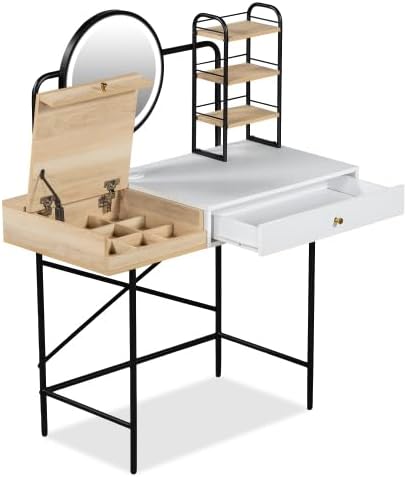 | Included Components | Mirror with 3-mode lighting and wireless charging station, dresser with drawers and 3 open shelves |