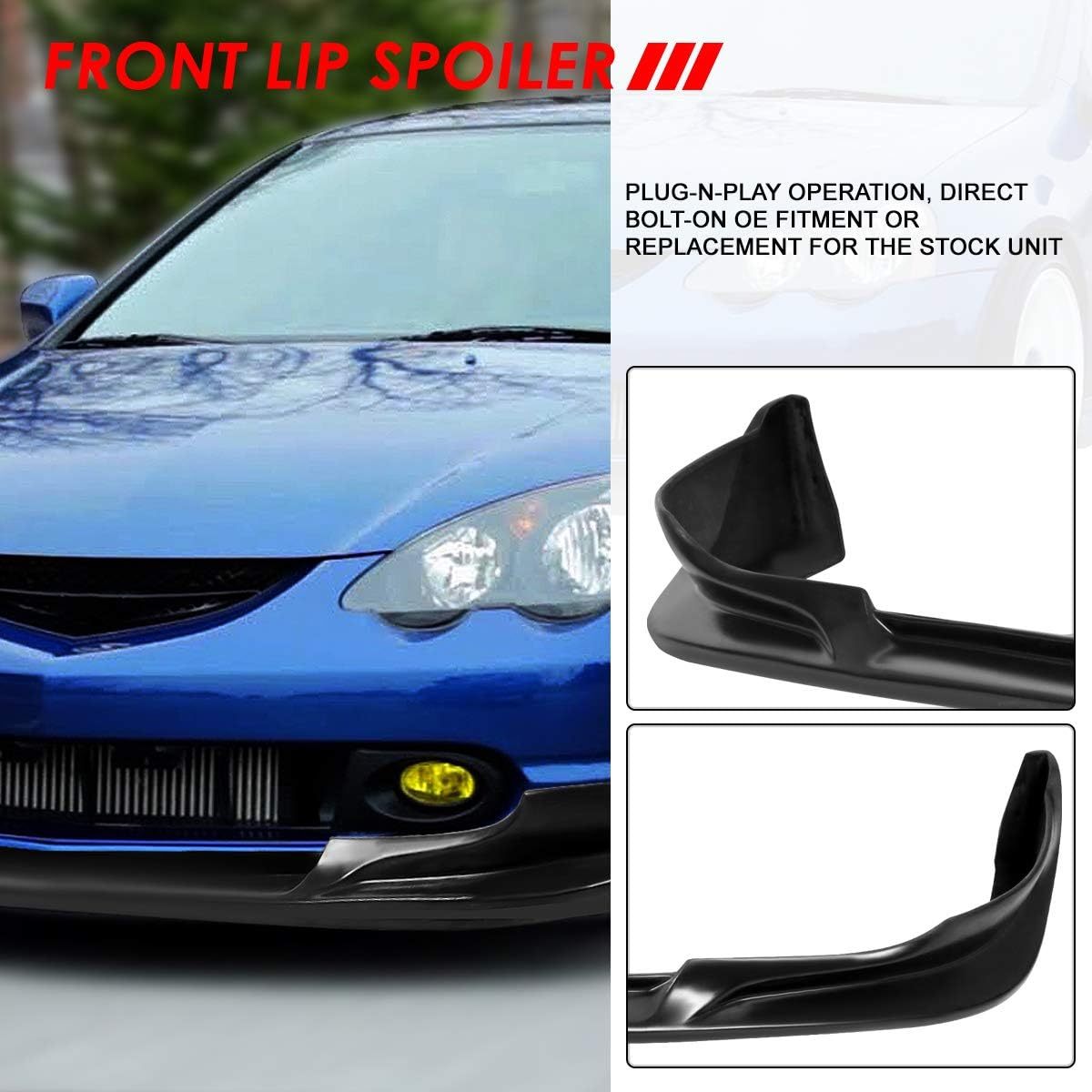 Ground Effect Kits help add downforce to your car with less drag than compared to a giant spoiler. Adding fins to the perimeter, body skirts and the underside of the vehicle adds style and usable downforce to your ridePackage Included:1 X Front LipThis product is compatible with:02-04 Acura RSX