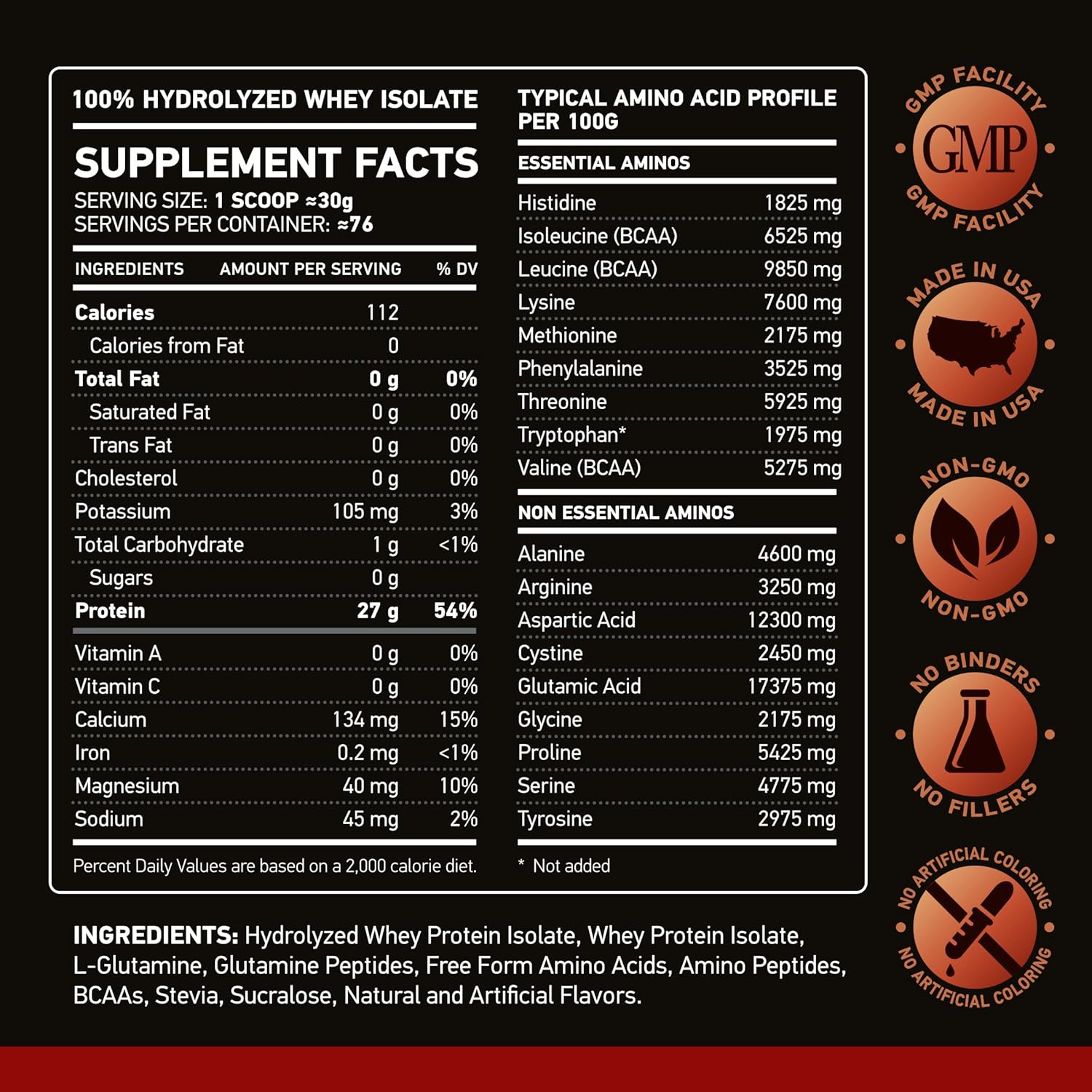 MUSCLE ISOLATE is a fast and furious hydrolyzed whey protein isolate formula enhanced with powerful aminos to help you build lean muscle, speed up muscle recovery, help inhibit catabolism and promote fat loss. Made with 100% hydrolyzed whey protein only – NO caseins, whey isolates, whey concentrates, soy, or plant proteins. Fast absorbing protein without the need for further breakdown to reach rapid and complete absorption.