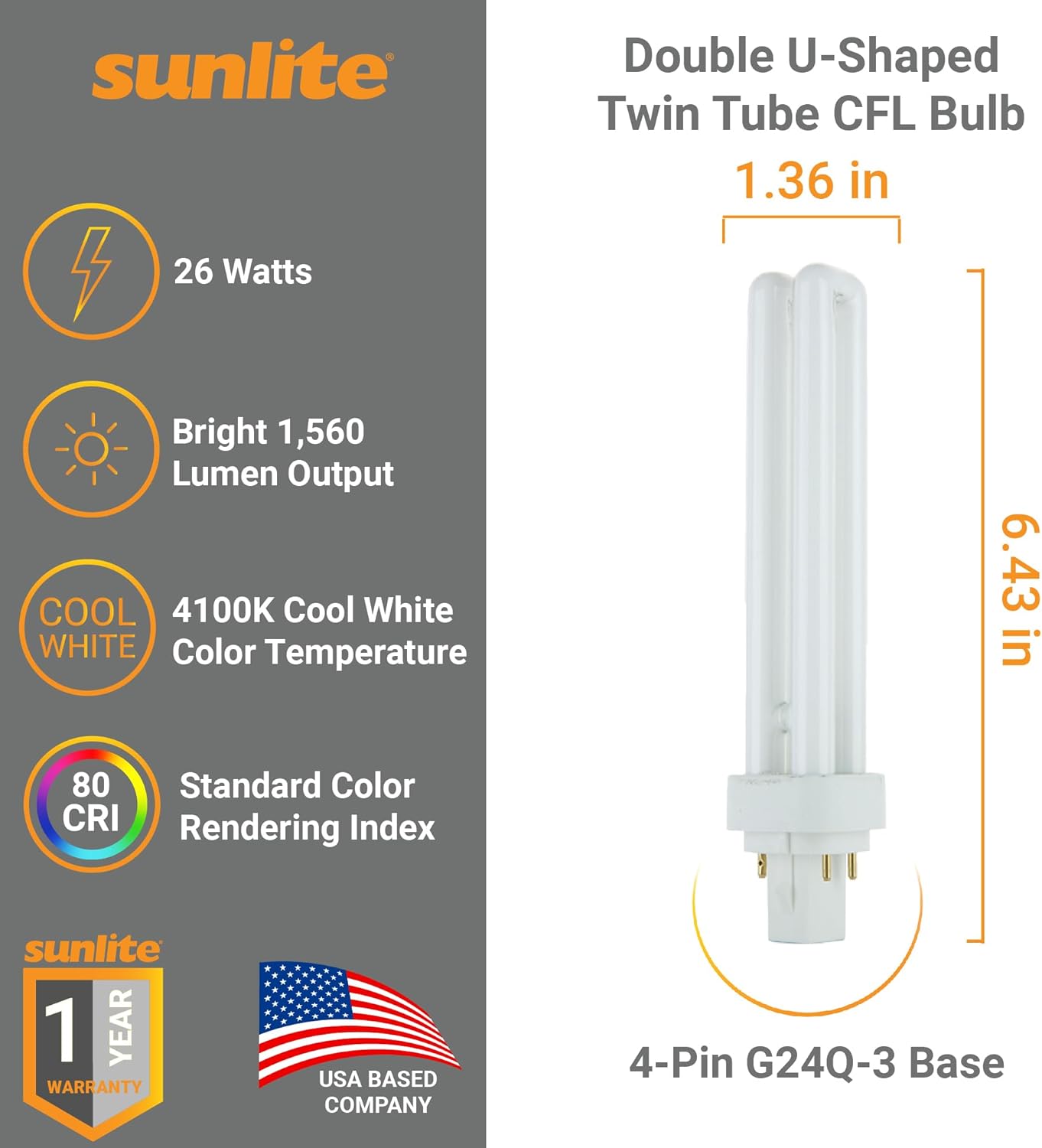 | Item Type Name | Sunlite PLD26/E/SP41K/10PK Fluorescent 26W PLD Double U-Shaped Twin Tube CFL Bulbs, 4-Pin G24Q-3 Base, 4100K Cool White, 10 Pack |